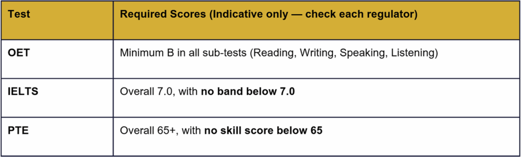 English proficiency is a key requirement for internationally qualified nurses (IQNMs) seeking registration in Australia or New Zealand. Regulatory bodies such as AHPRA and NCNZ require scores from approved English language tests — most commonly the OET, IELTS, or PTE Academic.